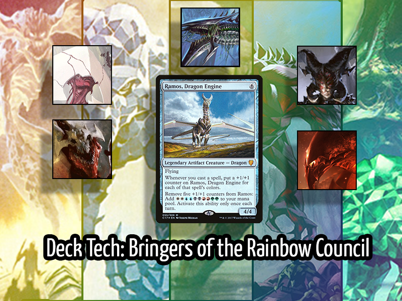 Besides the obvious reason of being an amazing looking metal dragon, Ramos is capable of playing into three major themes of the deck: +1/+1 counters, artifact affinity, and quickly achieving WUBRG to summon the Bringers.