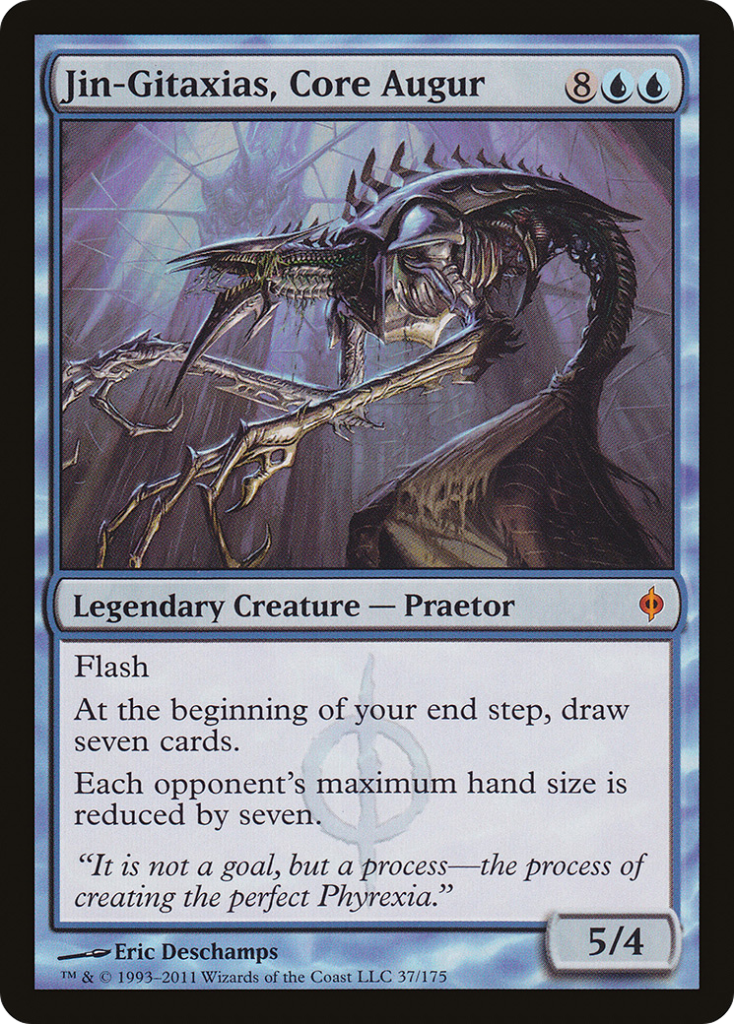 To appease the desire to play with the Bringers and Praetors, one of our earliest EDH/Commander decks was a deck centered on the theme of bringing out the Bringers (say that 10x fast) with their WUBRG ability while celebrating the glory that is Mirrodin and its artifact affinity. After several incarnations and additions to some of the “rainbow connections” (cards that are focused on WUBRG), this deck has manifested into one of our favorite combinations of pure, undiluted jank mixed with effective board state dominance.