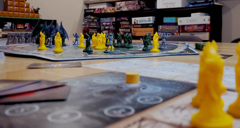 Eldritch Horror was a game that we highly anticipated collecting after initial discovery. Being already a big fan of Arkham Horror Second Edition, Elder Sign, and Mansions of Madness First Edition at that time, Eldritch Horror brought the rich flavor and storytelling aspect while combining or refining some of the best mechanics from their previous games. Nick even notes that Eldritch holds a nostalgic place in his heart for being one of the first Fantasy Flight games he ever owned and the cause of many fun but late nights with his friends in college. You’ll also notice that Belmont lists it as his favorite board game.