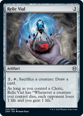 An additional ping to all opponents and life gain just from having a cleric turns this Relic Vial into a nice little wannabe Blood Artist.