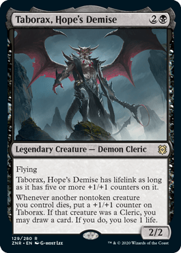 We’re going to be honest. In Magic: The Gathering, demons are just plain neat. We definitely made sure that we would find some big burly demonic entities that would still play nice with others, and also maybe had some easy ways to cheat them out on their own, or find them with the Shadowborn Apostles.